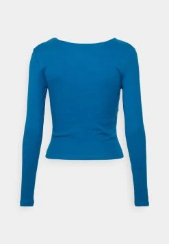Besorgen 😉 Even&Odd Damen SHIRRING DETAIL LONG SLEEVE CROP WITH GATHER – Langarmshirt – Blue 😀