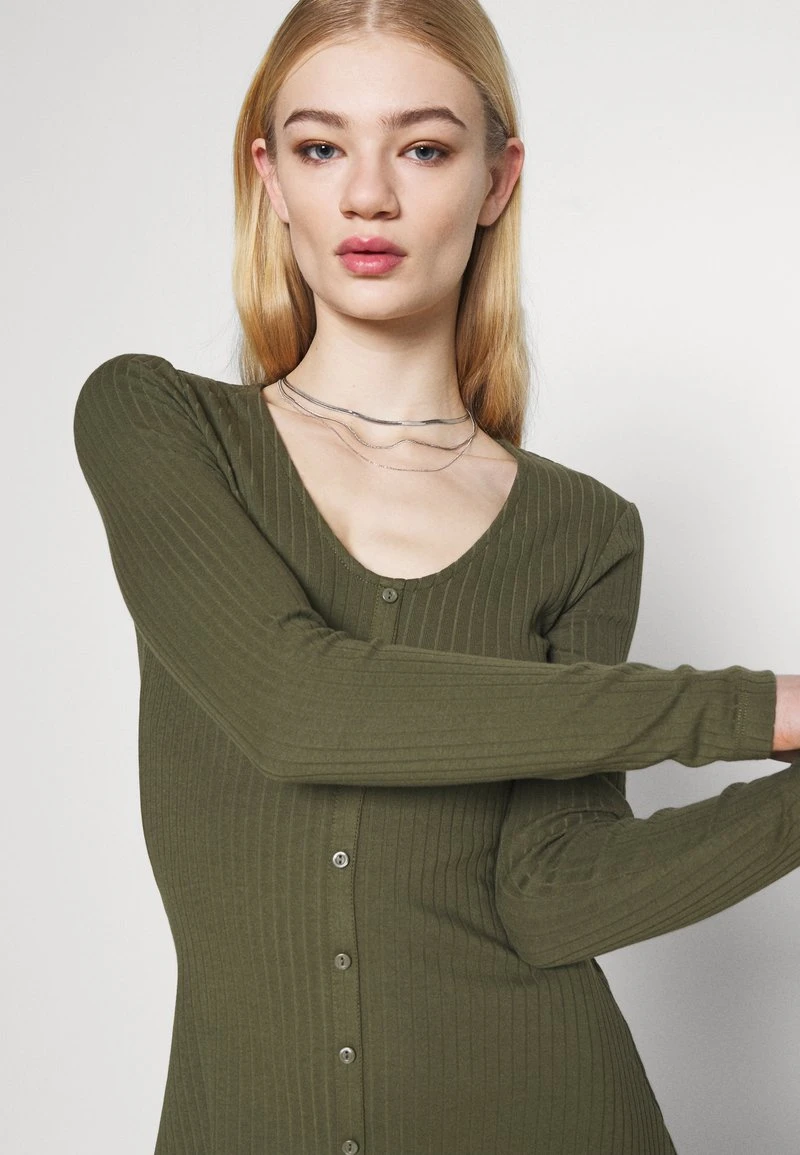 Bestpreis 😀 Even&Odd Ribbed Button Through Mini 💯 Dress – Strickkleid – Green | Damen ⌛