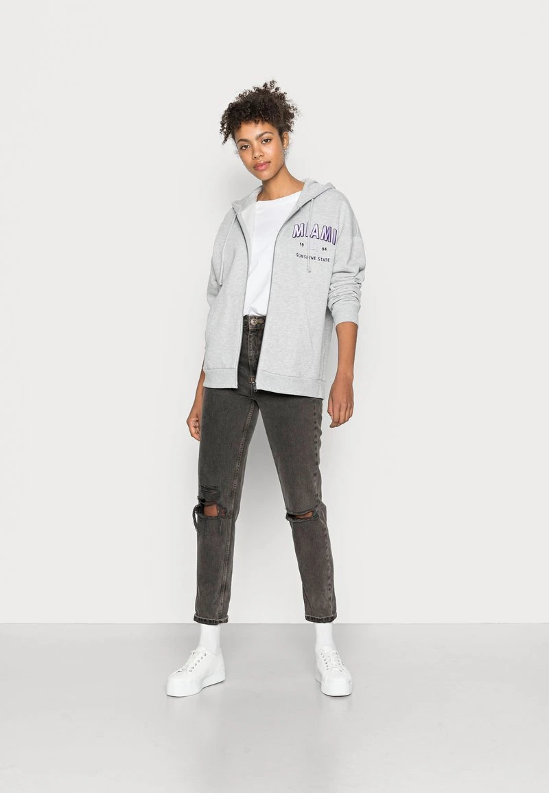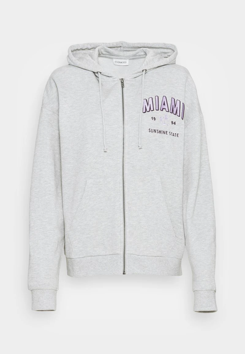 Coupon ⭐ Even&Odd Damen EMBROIDERED OVERSIZED HOODED ZIP JACKET – Sweatjacke – Mottled Light Grey 🛒